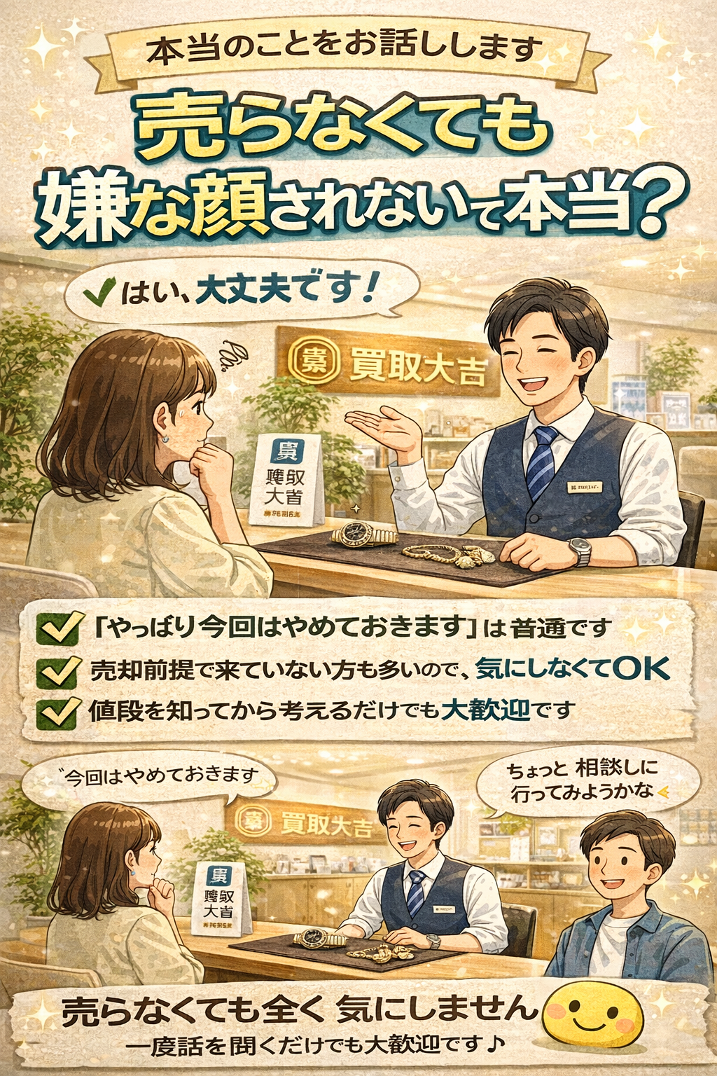 査定後に売らずに帰られる方はとても多いです。